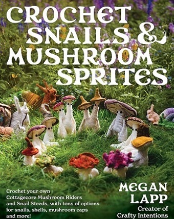 Книга по вязанию крючком. Загляните в эту коллекцию, полную улиточных скакунов и грибных наездников! Грибные эльфы и улитки - восхитительная пара, открывающая бесконечные возможности для создания волшебных существ. В этой книге представлены грибы-спрайты различных размеров, с различными вариантами ножек и шляпок, а также улитки маленьких, средних и гигантских размеров с круглыми или заостренными раковинами - все, что вам нужно для создания причудливого дуэта.