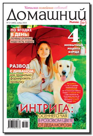 Домашний» — журнал для всей семьи! В каждом номере — секреты красоты и здоровья, домашнего уюта, кулинарные советы, рекомендации астролога, уход за домашними питомцами, семейная психология, юридическая консультация, житейские истории и многое-многое другое. Также на страницах журнала вас ждут интересные интервью с любимыми звездами шоу-бизнеса и кино, где они делятся секретами личной жизни и профессионального успеха, рассказывают о доме, семье и детях.
