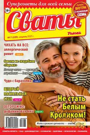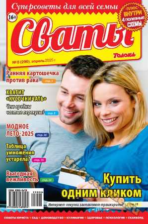 «Сват плохого не посоветует» — говорят в народе. В каждом номере журнала «Сваты» вы найдете: проверенные советы от читателей, экспертов, юристов, медиков, психологов, кулинарные рецепты, секреты здоровья, помощь в воспитании детей разного возраста, песни, байки, анекдоты. И все это в ярком, красочном оформлении.