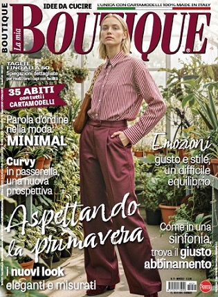 La mia Boutique - итальянский журнал по шитью. В каждом выпуске около 40 моделей, крупнейшего ежемесячного издания о моде в Италии. Для моделей, в зависимости от рубрики, предлагаются выкройки размеров – с 38-го по 54-й (размеры IT). Также есть специальный раздел с актуальной модой для детей. Все модели сопровождаются подробными инструкциями и выкройками.